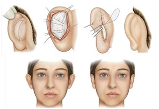 Attraverso una incisione cutanea realizzata nella parte posteriore del padiglione auricolare, quindi assolutamente non visibile, si procede ad asportare la striscia di cute in eccesso ed a modellare il foglio cartilagineo del padiglione auricolare, attraverso incisioni e suture che hanno il compito di ricreare i solchi mancanti ed accollare il padiglione alla struttura ossea della mastoide, creando così la simmetria di visione. La nuova forma e posizionamento del padiglione vengono assicurati da particolari fili di sutura non riassorbibili che dovranno garantire la prolungata stabilità statica. Infine, la sutura cutanea finale completa i tempi dell’intervento chirurgico. E’ previsto un bendaggio compressivo